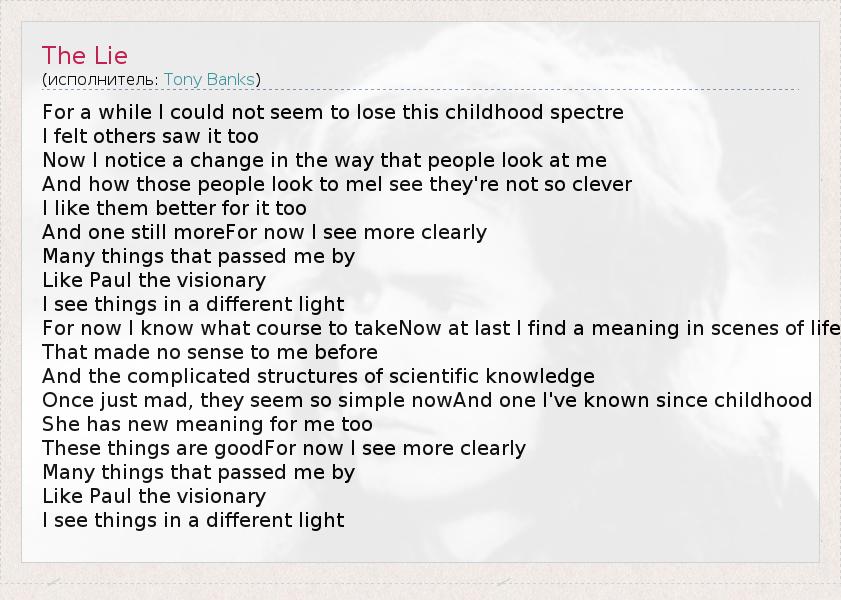 А как ты думаешь, о чем песня "The Lie" ?