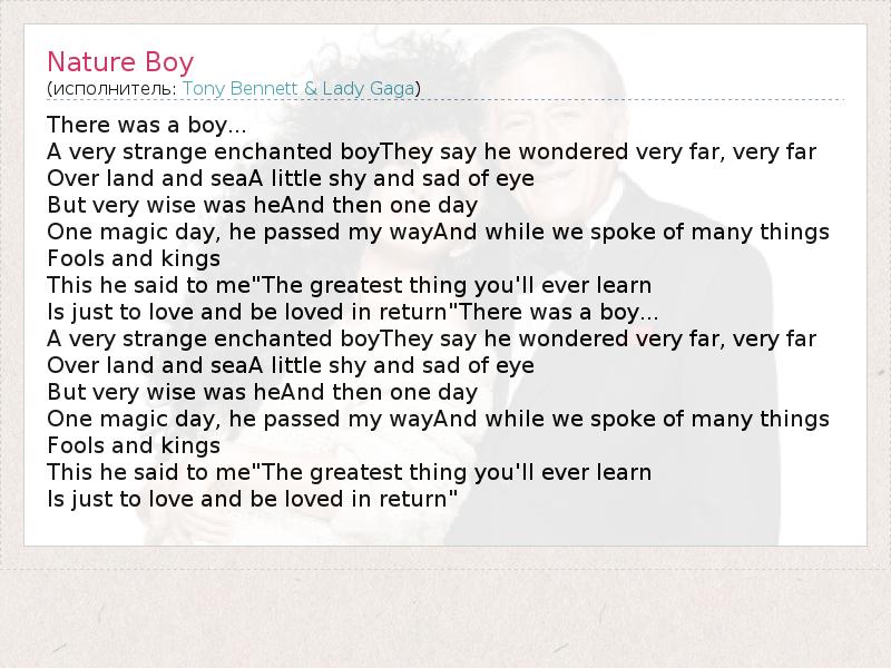 А как ты думаешь, о чем песня "Nature Boy" ?