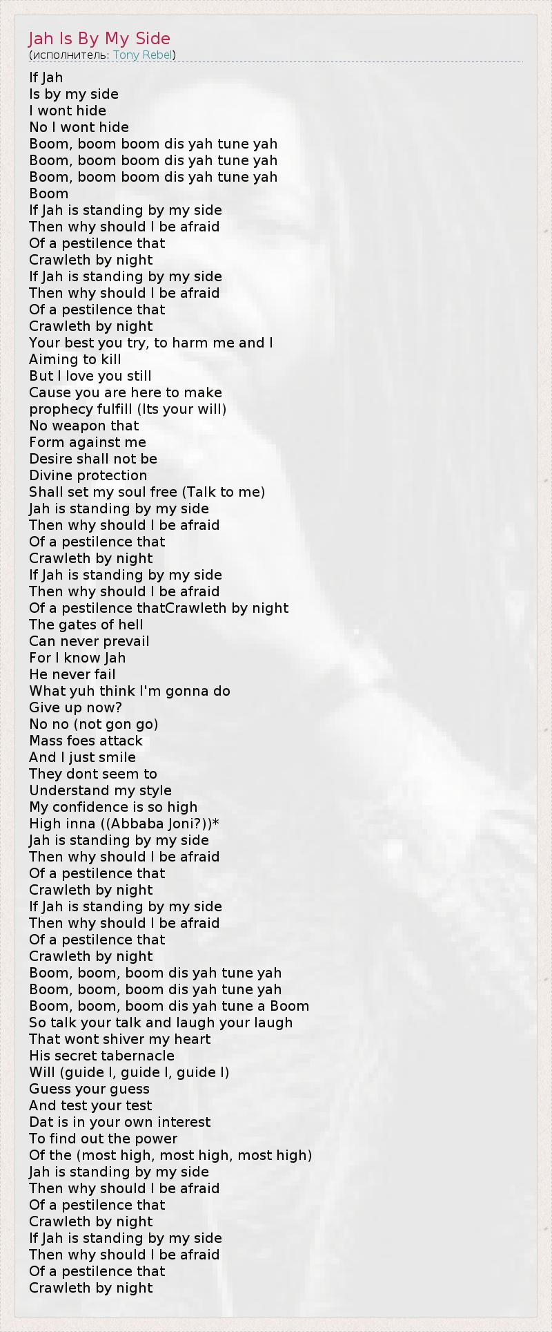 Jah is standing by my side
