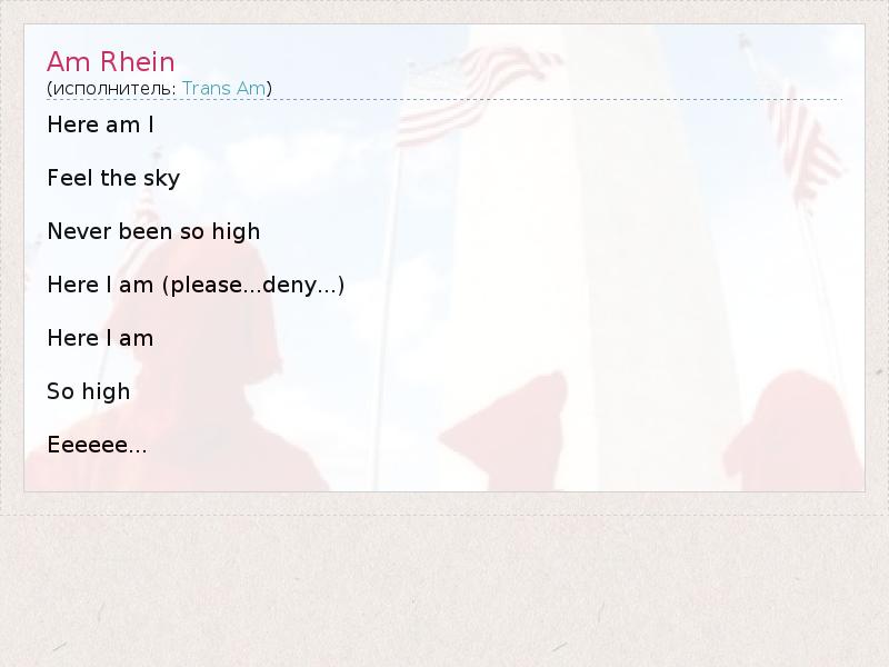 А как ты думаешь, о чем песня "Am Rhein" ?