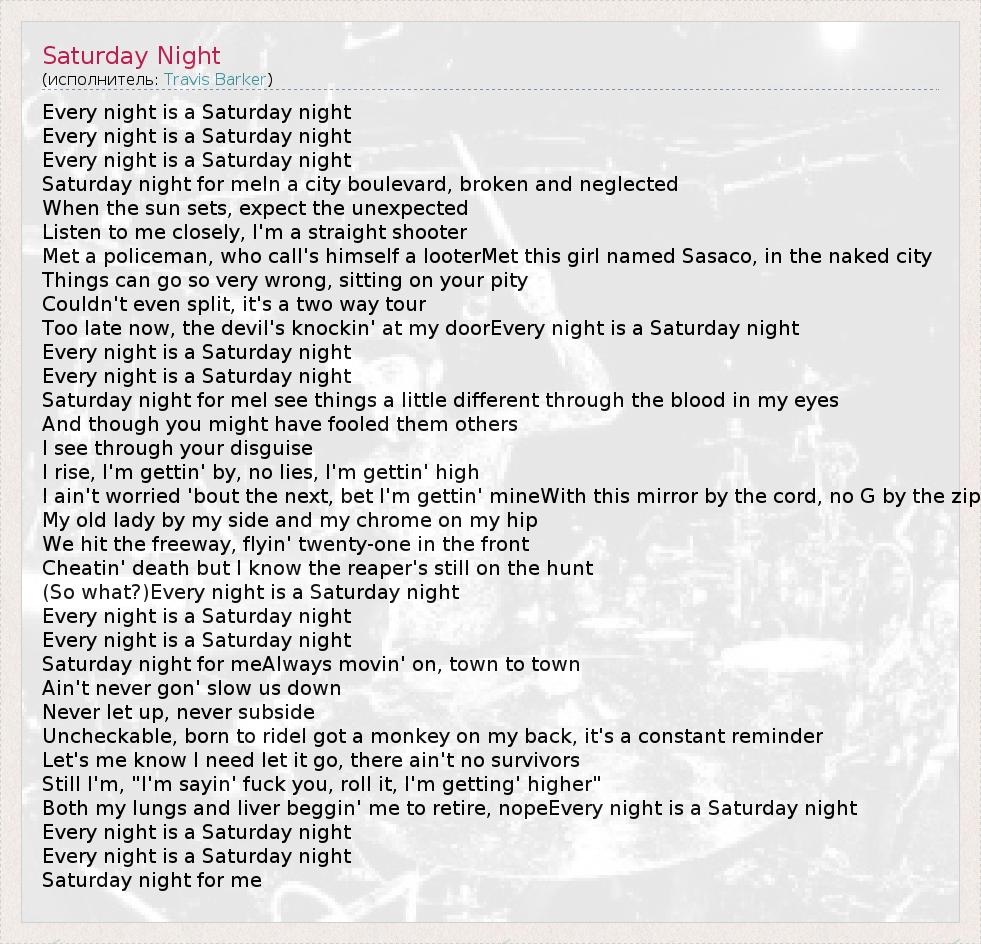 А как ты думаешь, о чем песня "Saturday Night" ?