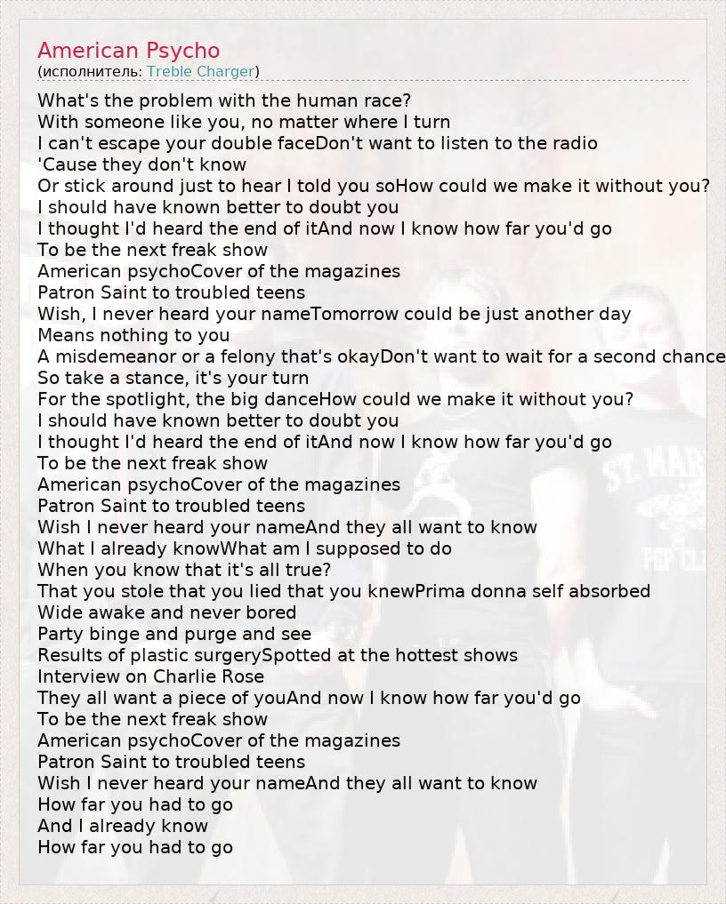 А как ты думаешь, о чем песня "American Psycho" ?