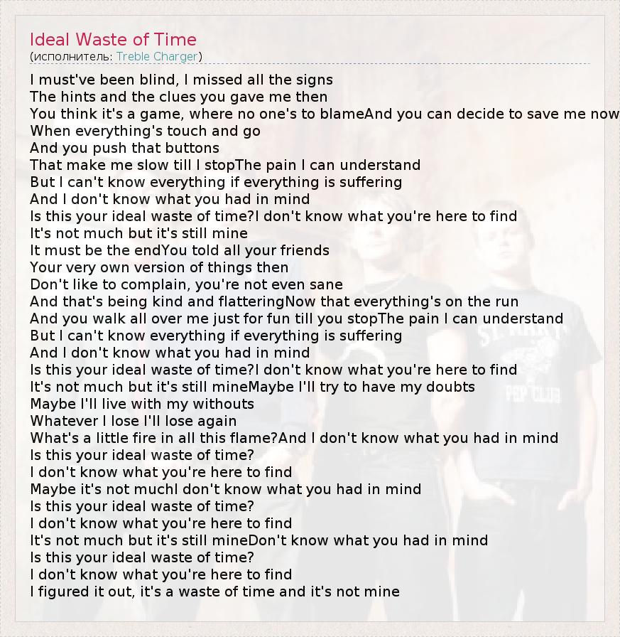 А как ты думаешь, о чем песня "Ideal Waste of Time" ?