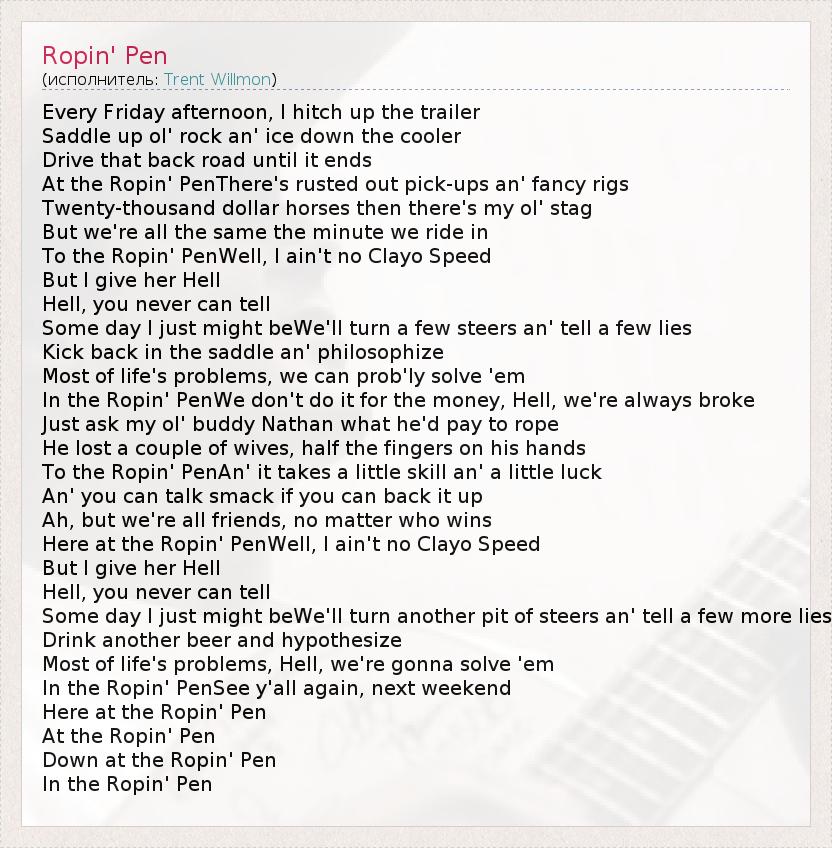 А как ты думаешь, о чем песня "Ropin' Pen" ?