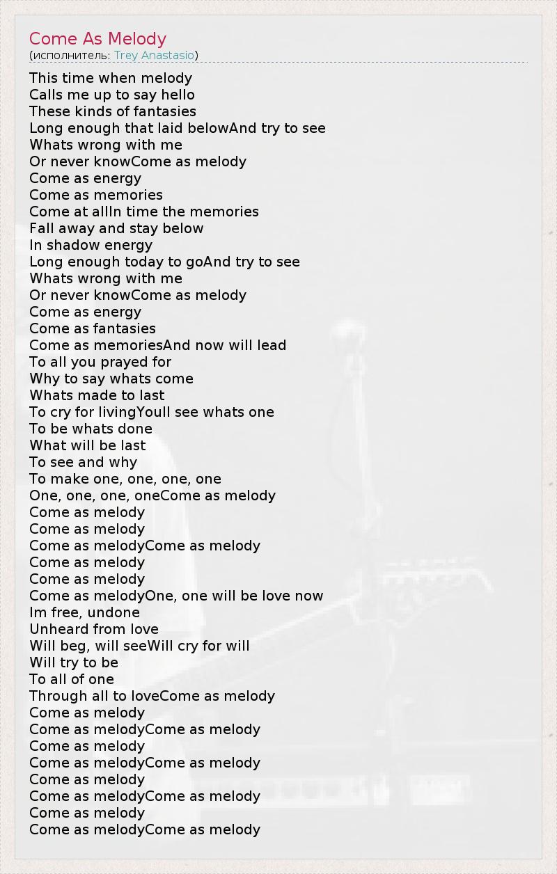 А как ты думаешь, о чем песня "Come As Melody" ?