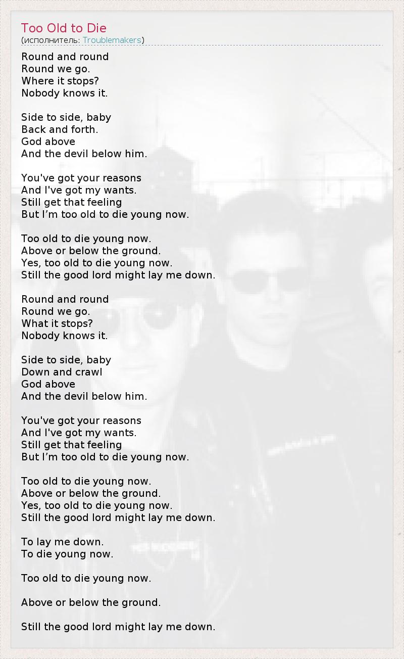 А как ты думаешь, о чем песня "Too Old to Die" ?