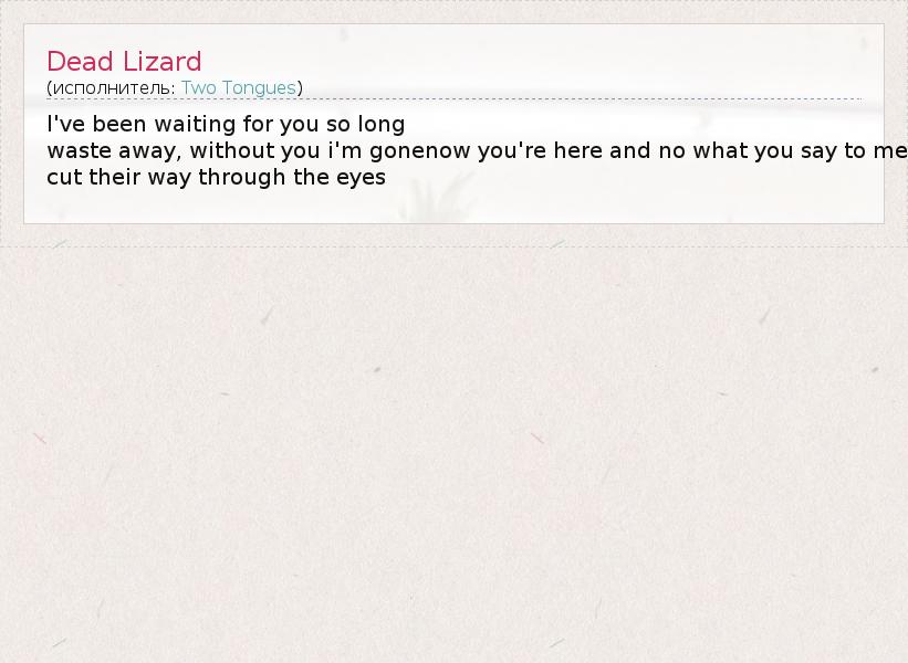 А как ты думаешь, о чем песня "Dead Lizard" ?