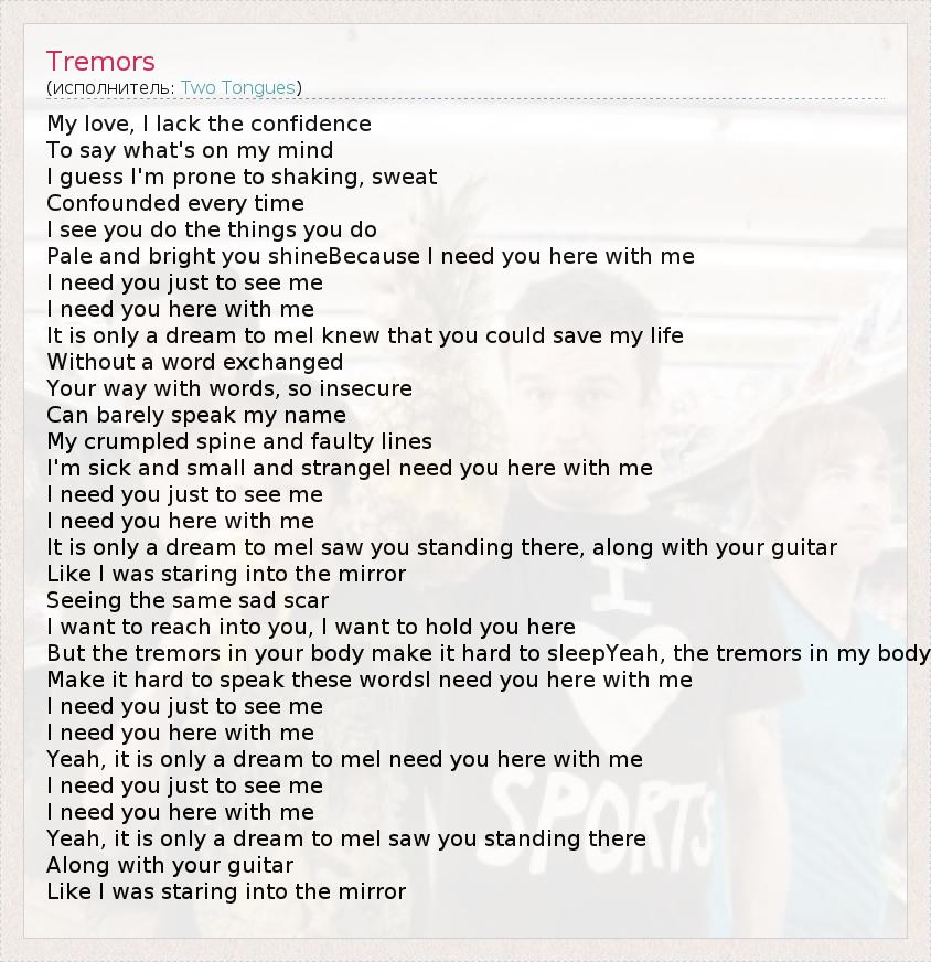 But the tremors in your body make it hard to sleepYeah, the tremors in my body