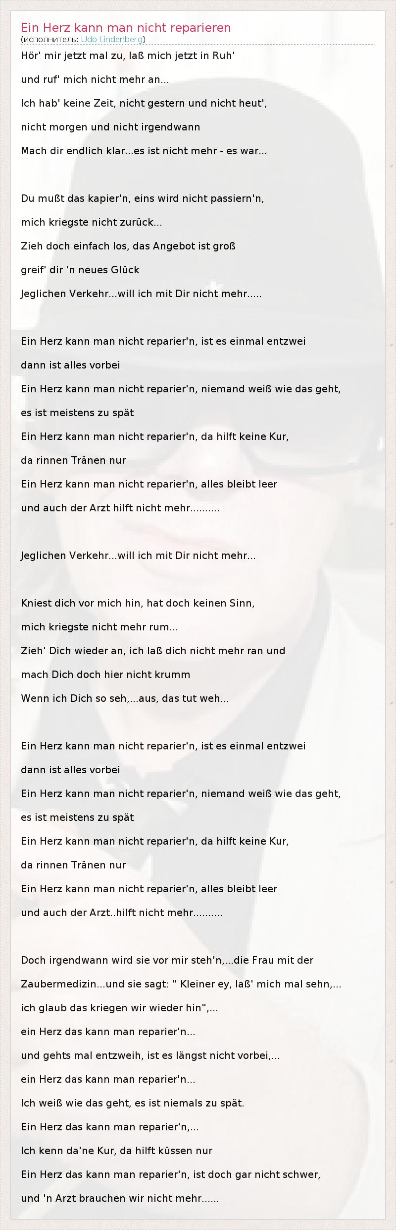 А как ты думаешь, о чем песня "Ein Herz kann man nicht reparieren" ?