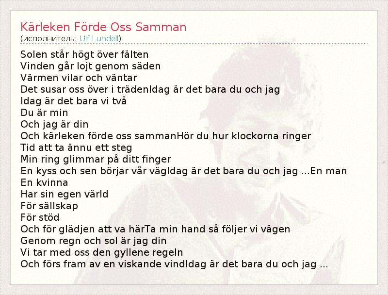 А как ты думаешь, о чем песня "Kärleken Förde Oss Samman" ?