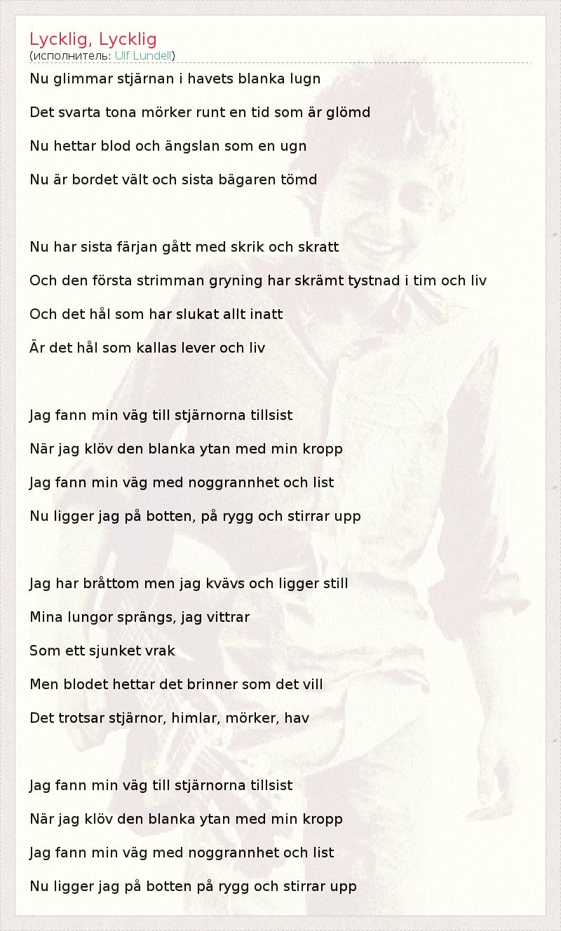 А как ты думаешь, о чем песня "Lycklig, Lycklig" ?