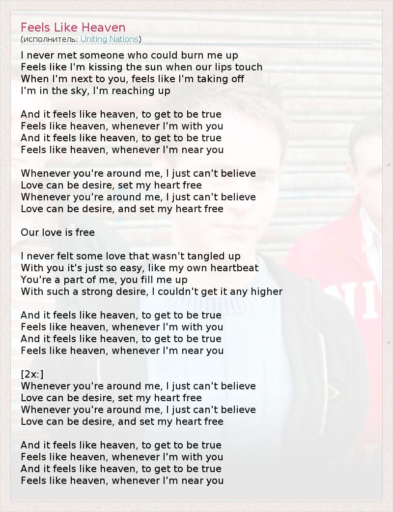 А как ты думаешь, о чем песня "Feels Like Heaven" ?