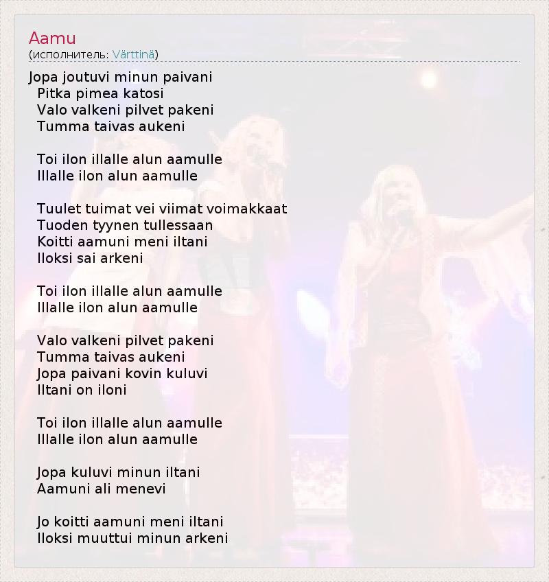 А как ты думаешь, о чем песня "Aamu" ?