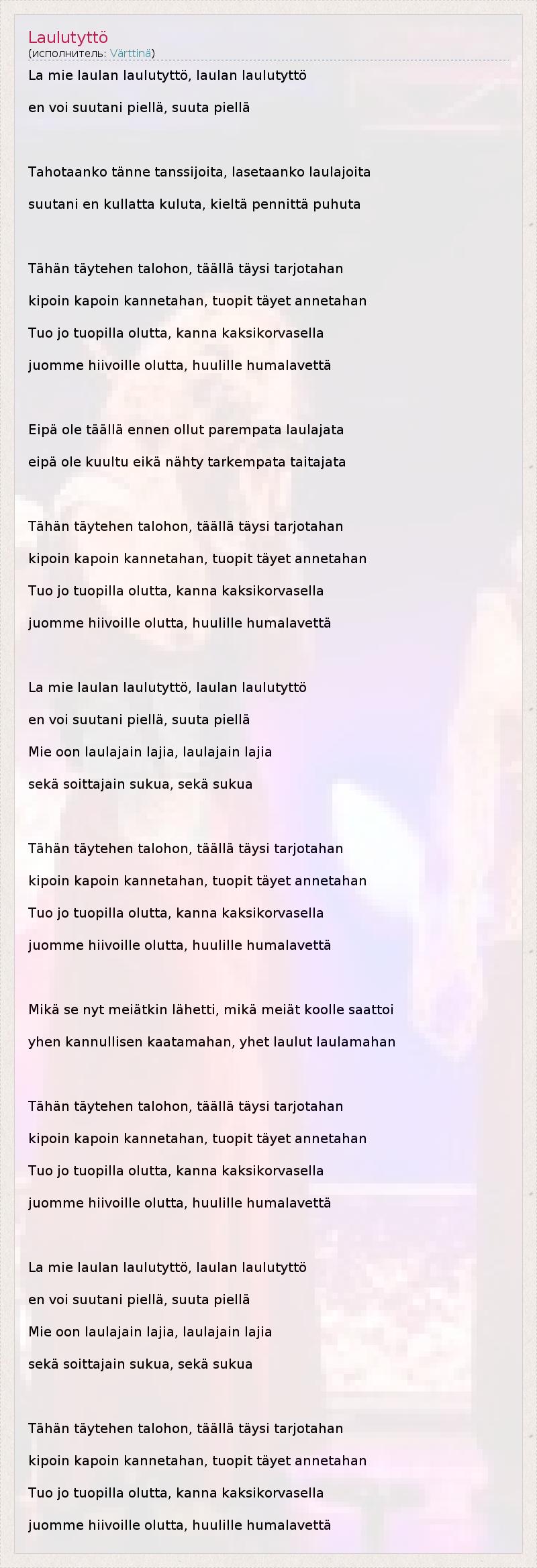 А как ты думаешь, о чем песня "Laulutyttö" ?