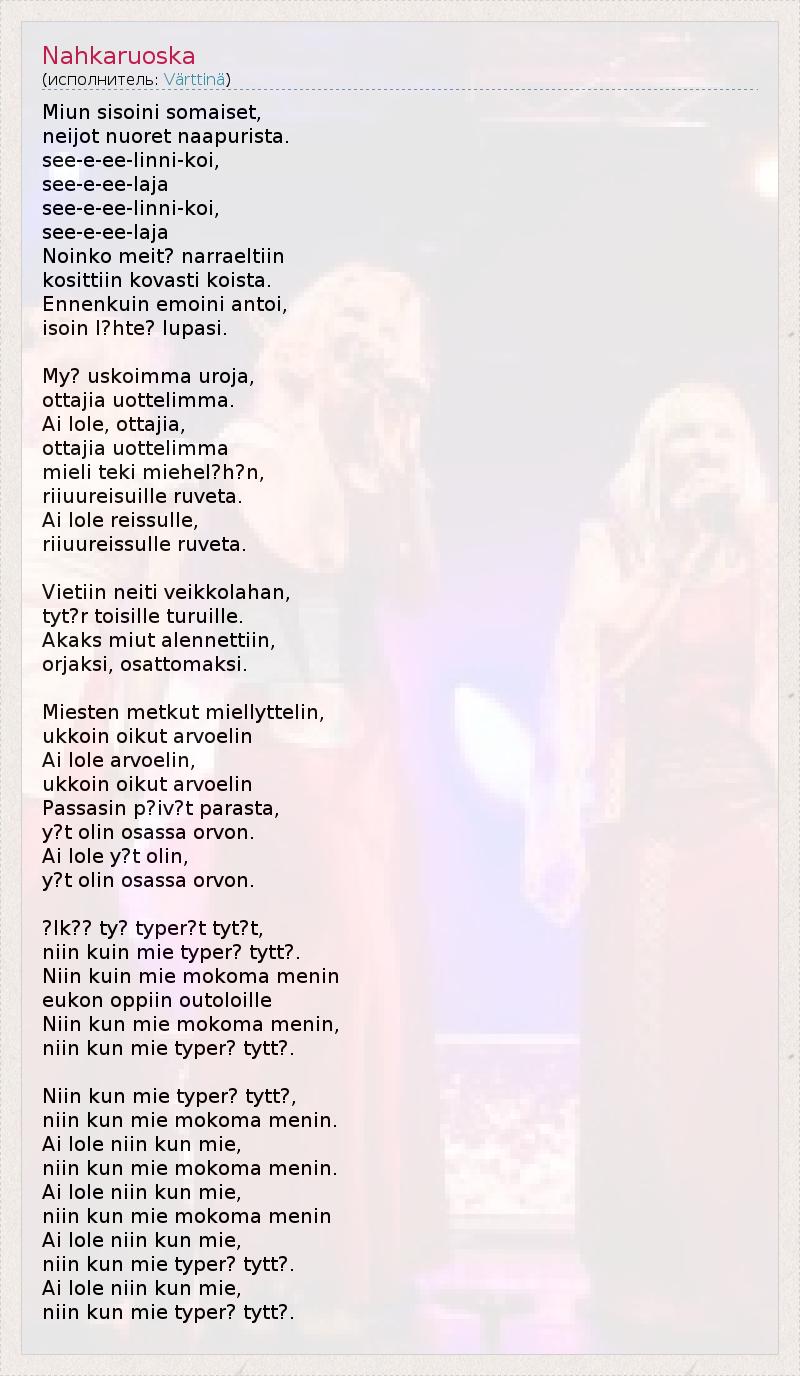А как ты думаешь, о чем песня "Nahkaruoska" ?