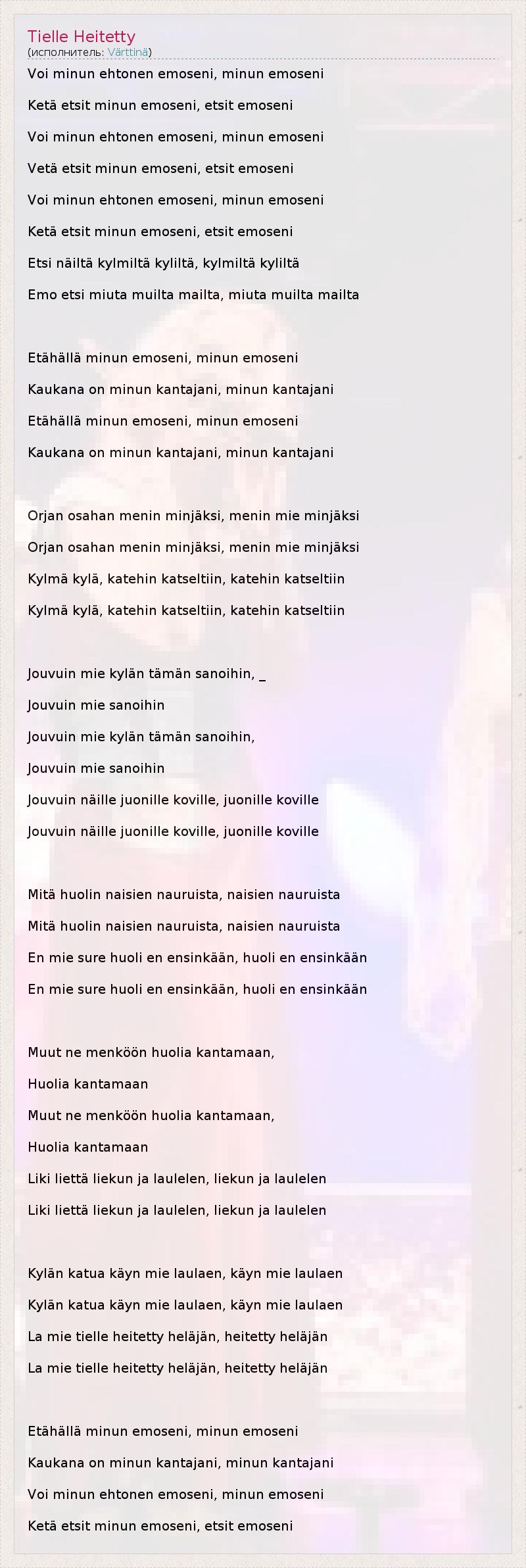 А как ты думаешь, о чем песня "Tielle Heitetty" ?
