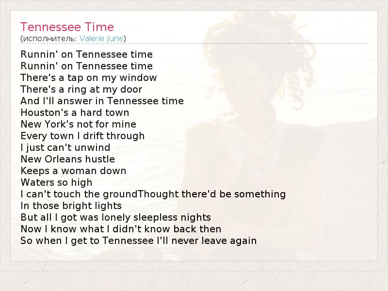 А как ты думаешь, о чем песня "Tennessee Time" ?