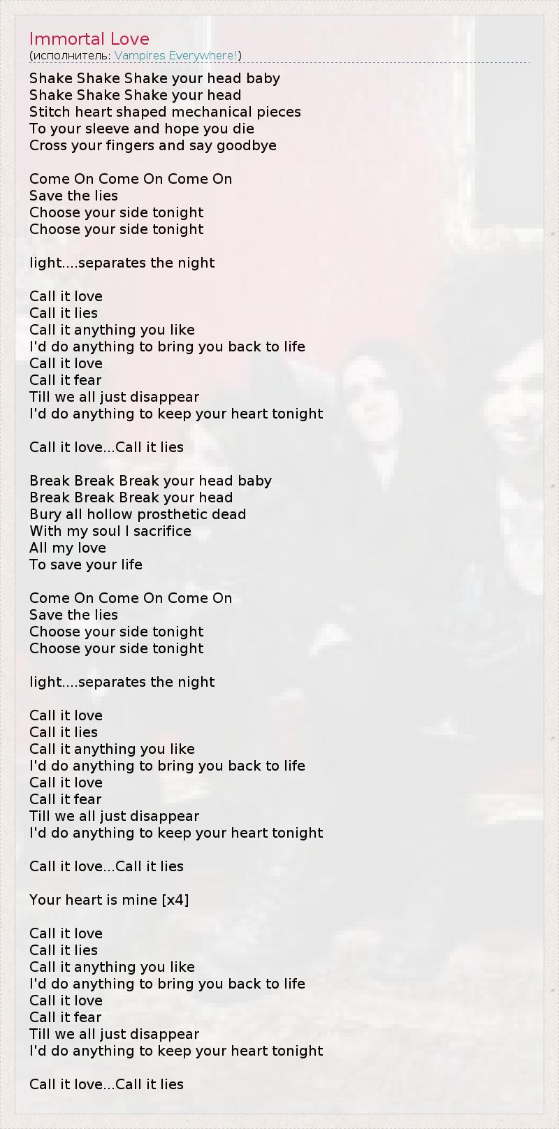 А как ты думаешь, о чем песня "Immortal Love" ?