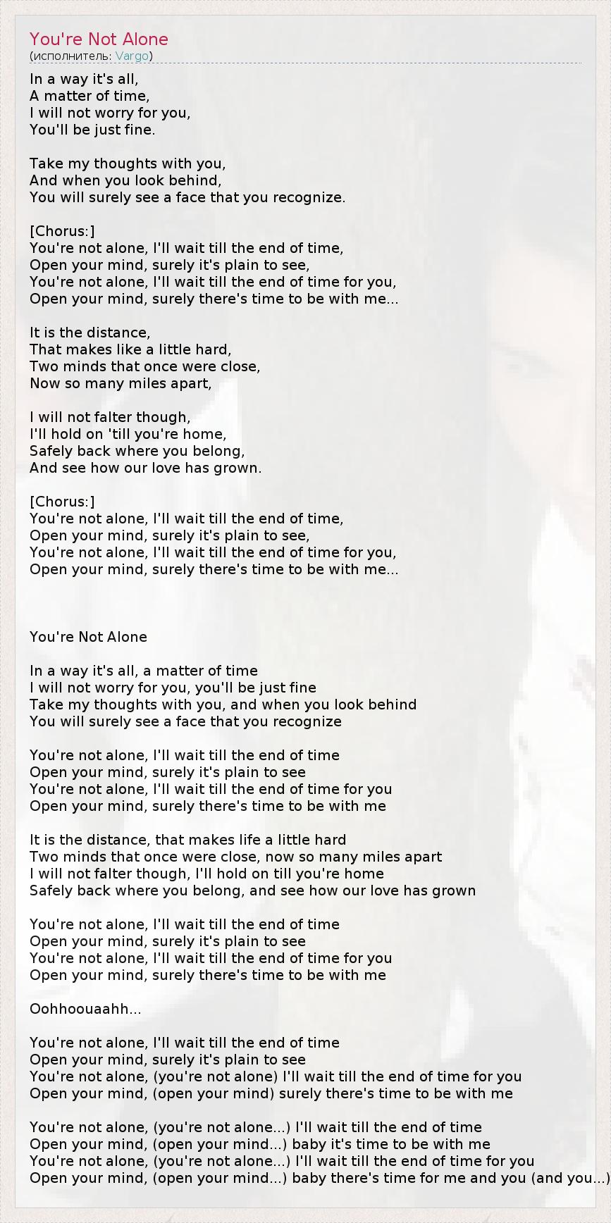 You're not alone, (you're not alone...) I'll wait till the end of time for you