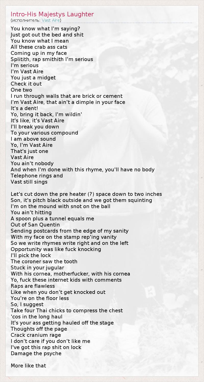 ГлавнаяИсполнителиVast AireIntro-His Majestys Laughter