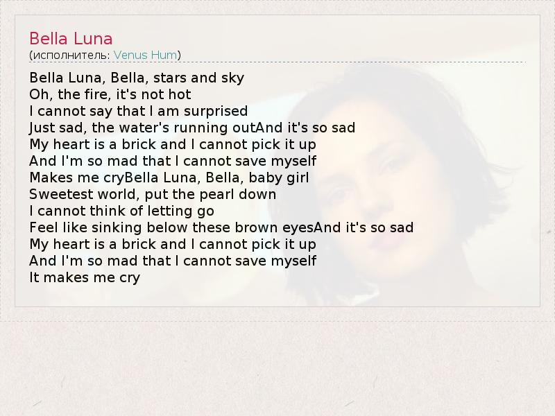 А как ты думаешь, о чем песня "Bella Luna" ?
