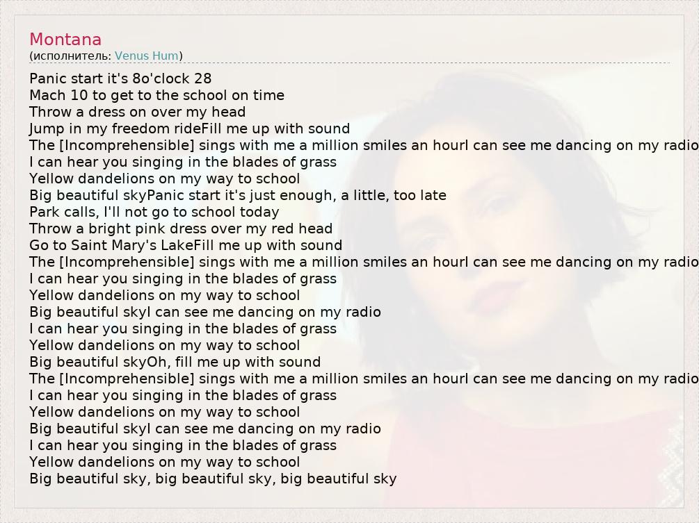 Это интересно:Трио Venus Hum было образовано в Нэшвилле (США), местности не слишком известной танцевальными и электронными проектами, однако этот факт не помешал Annette Strean, Tony Miracle и Kip Kubin создать команду, ориентированную на эти жанры. В своем дебютном альбоме Big Beautiful Sky группа Venus Hum представляет колоритный dream pop. В этом гипнотическом погружении слышны влияния танцевальной музыки и инди. Теплый, даже сладковатый... продолжение
