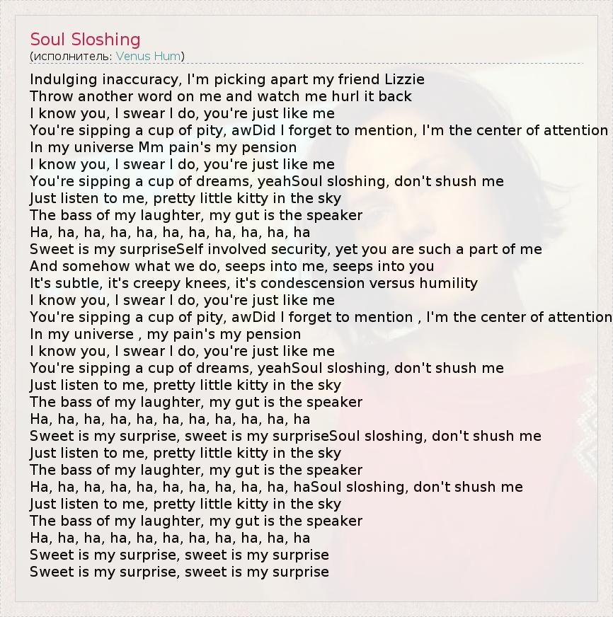 Sweet is my surprise, sweet is my surpriseSoul sloshing, don't shush me