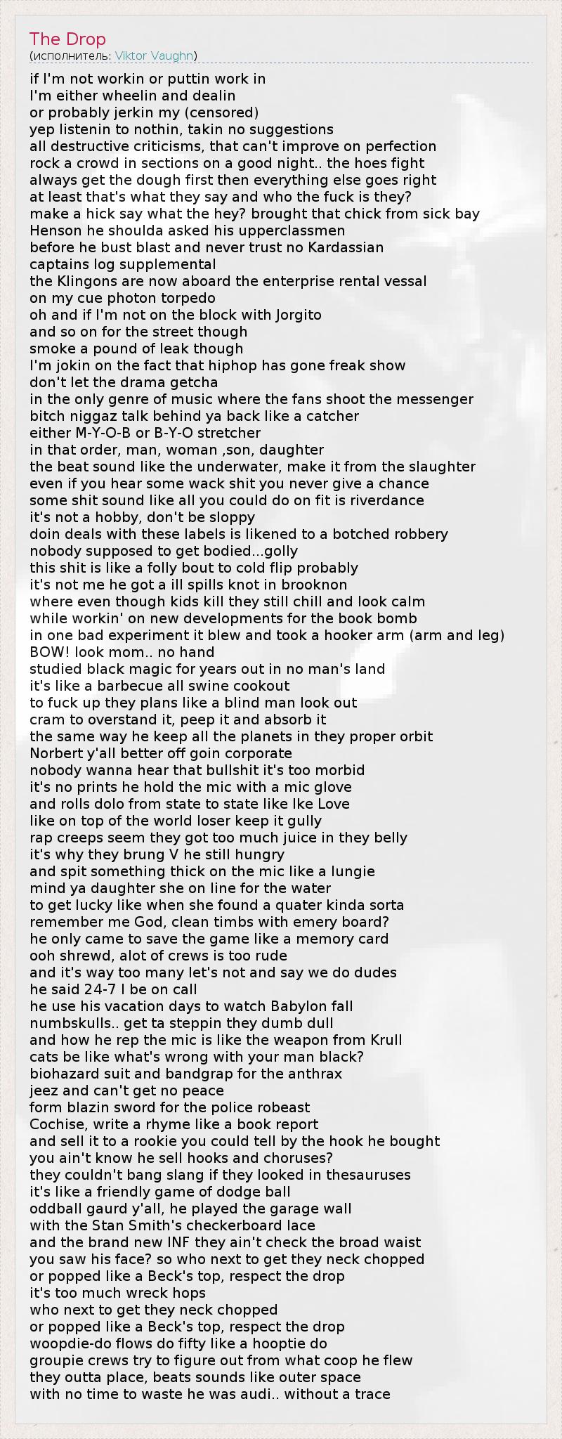 А как ты думаешь, о чем песня "The Drop" ?