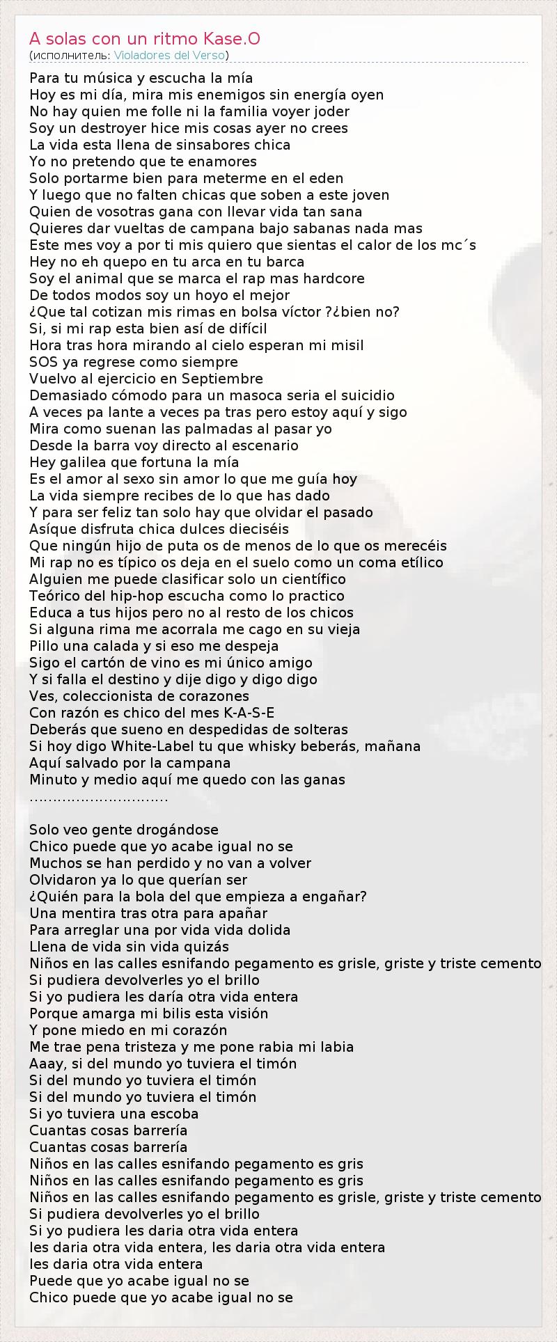 А как ты думаешь, о чем песня "A solas con un ritmo Kase.O" ?