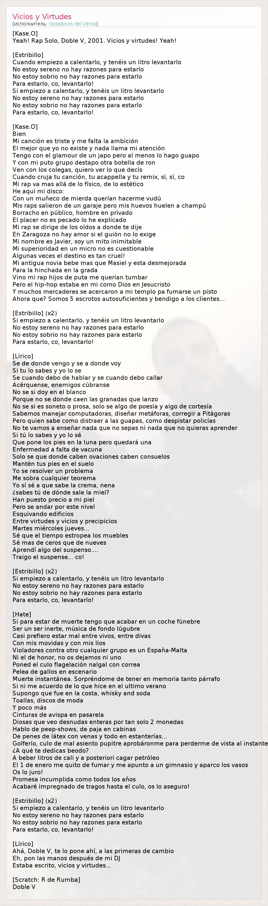 А как ты думаешь, о чем песня "Vicios y Virtudes" ?