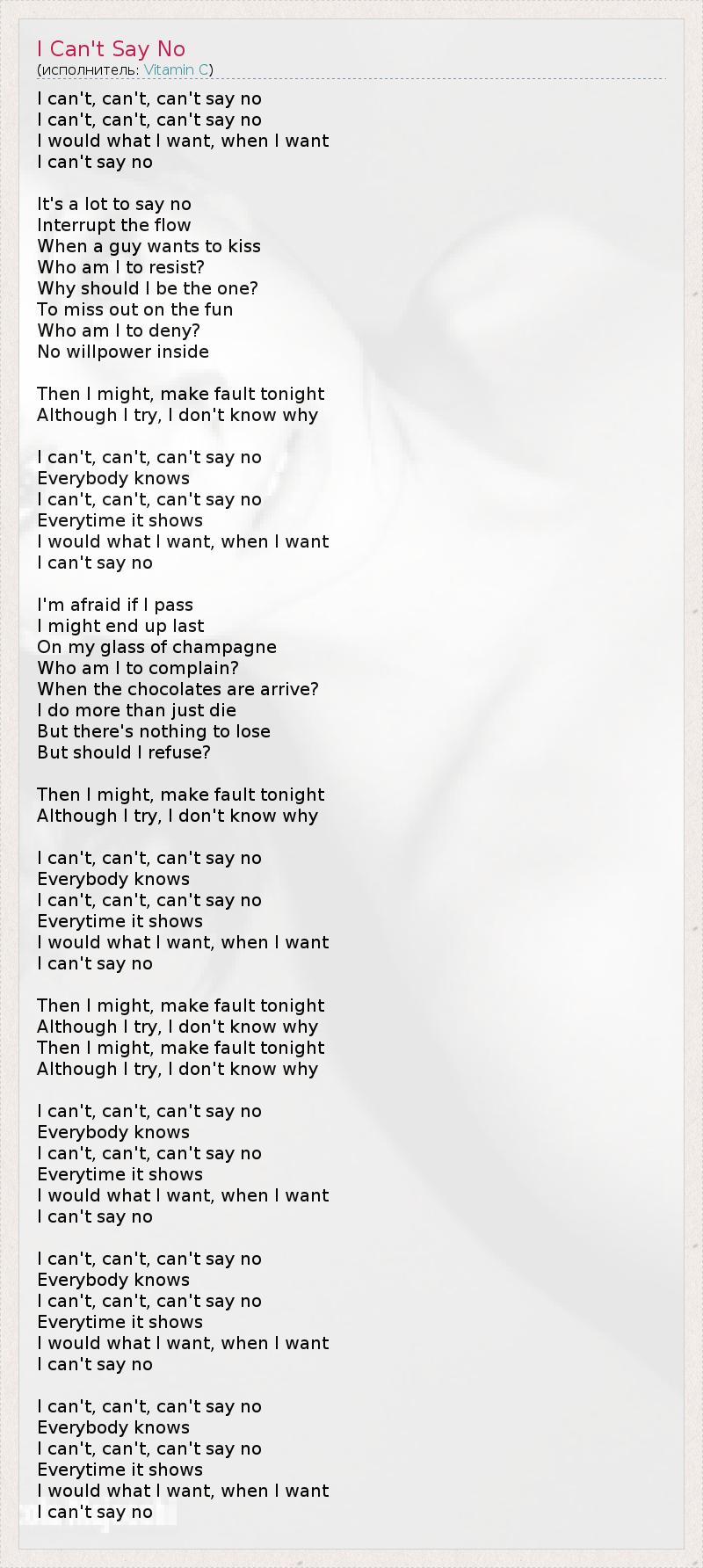 I Can't Say No