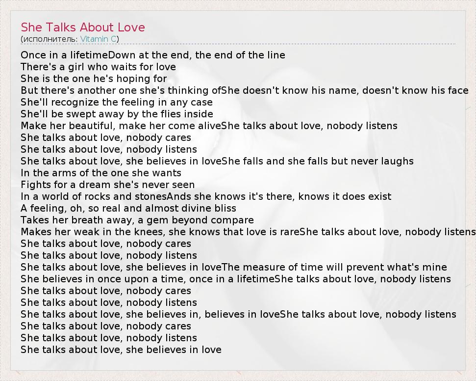 А как ты думаешь, о чем песня "She Talks About Love" ?
