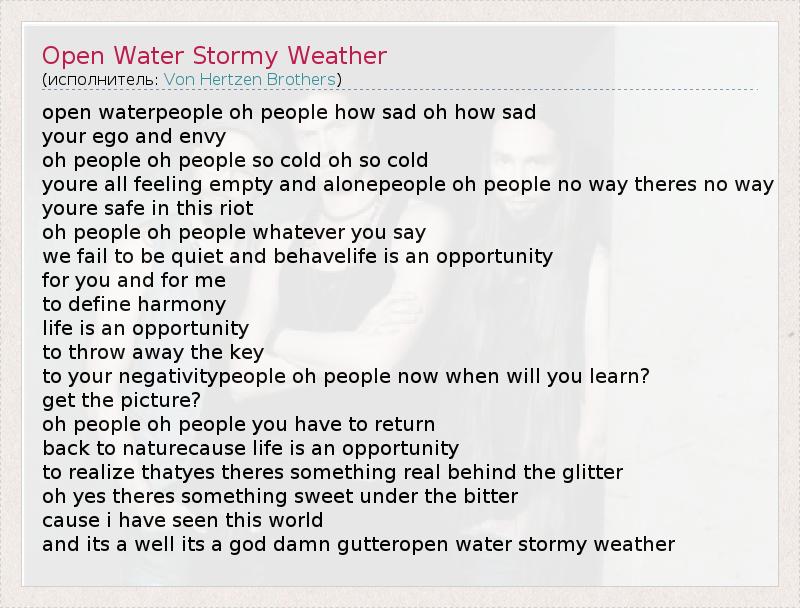 А как ты думаешь, о чем песня "Open Water Stormy Weather" ?