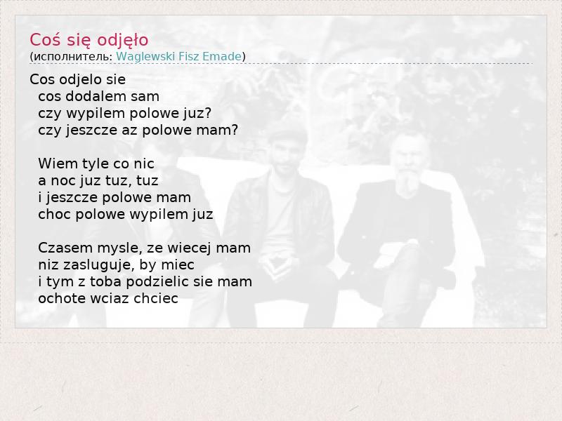 А как ты думаешь, о чем песня "Coś się odjęło" ?