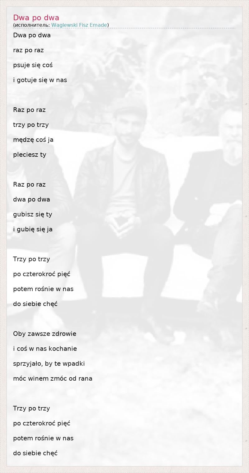 А как ты думаешь, о чем песня "Dwa po dwa" ?