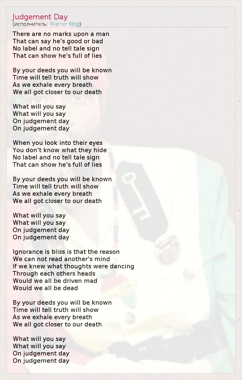 А как ты думаешь, о чем песня "Judgement Day" ?