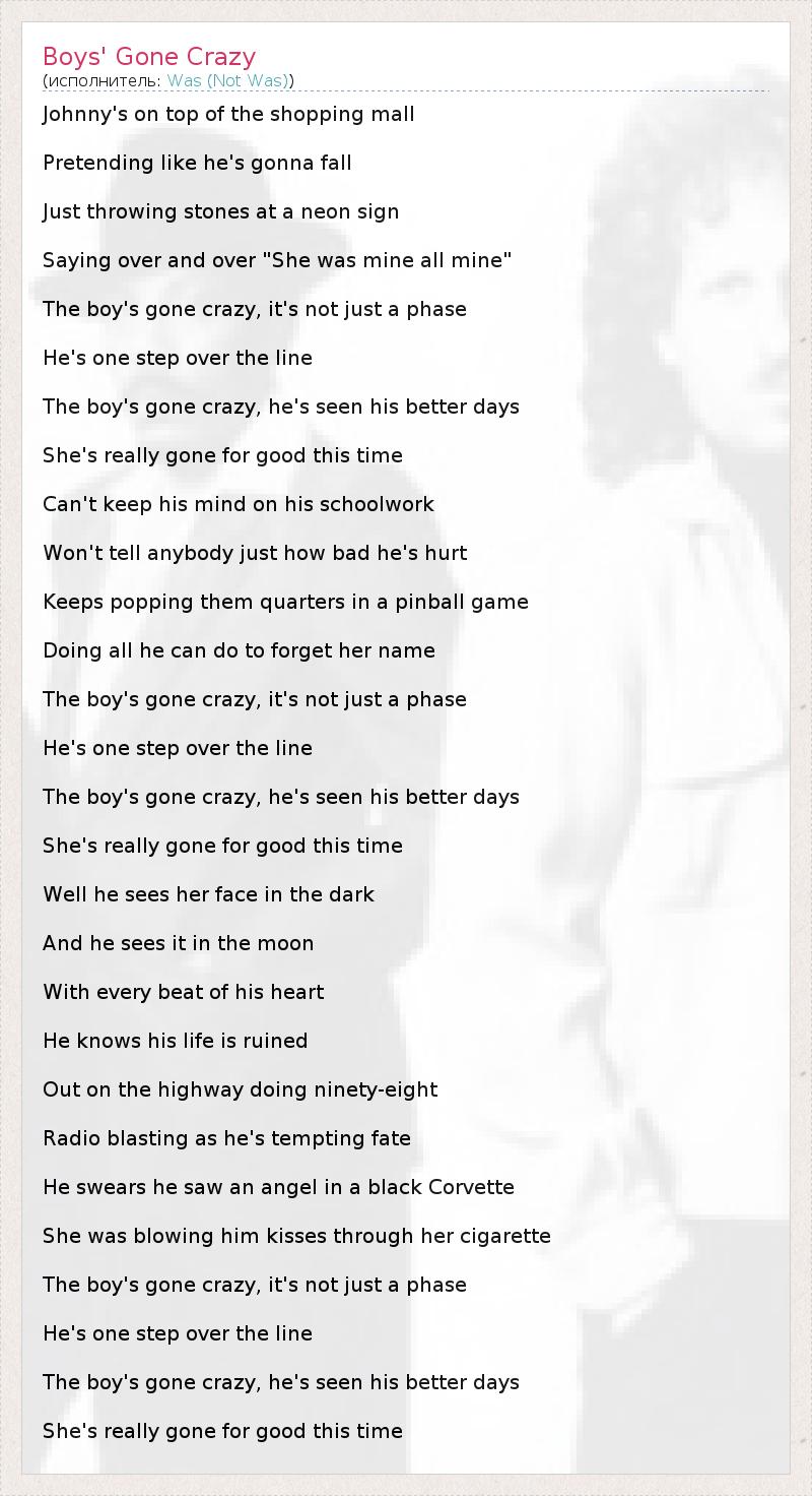 А как ты думаешь, о чем песня "Boys' Gone Crazy" ?