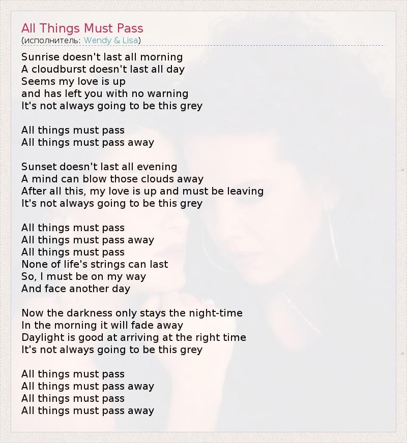 А как ты думаешь, о чем песня "All Things Must Pass" ?