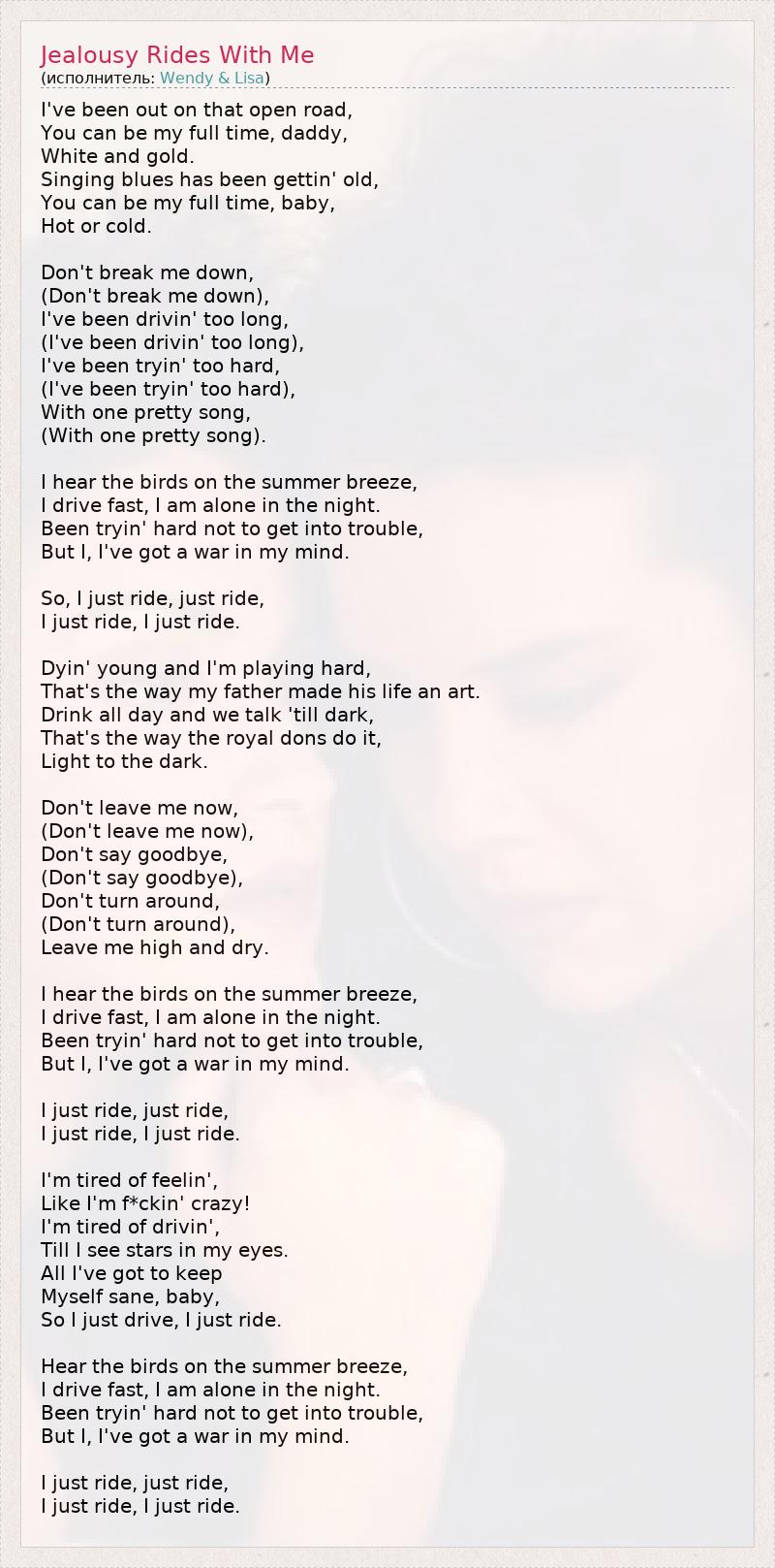 А как ты думаешь, о чем песня "Jealousy Rides With Me" ?