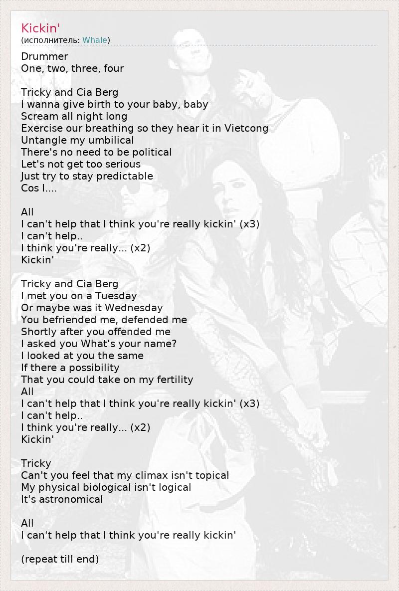 I can't help that I think you're really kickin'