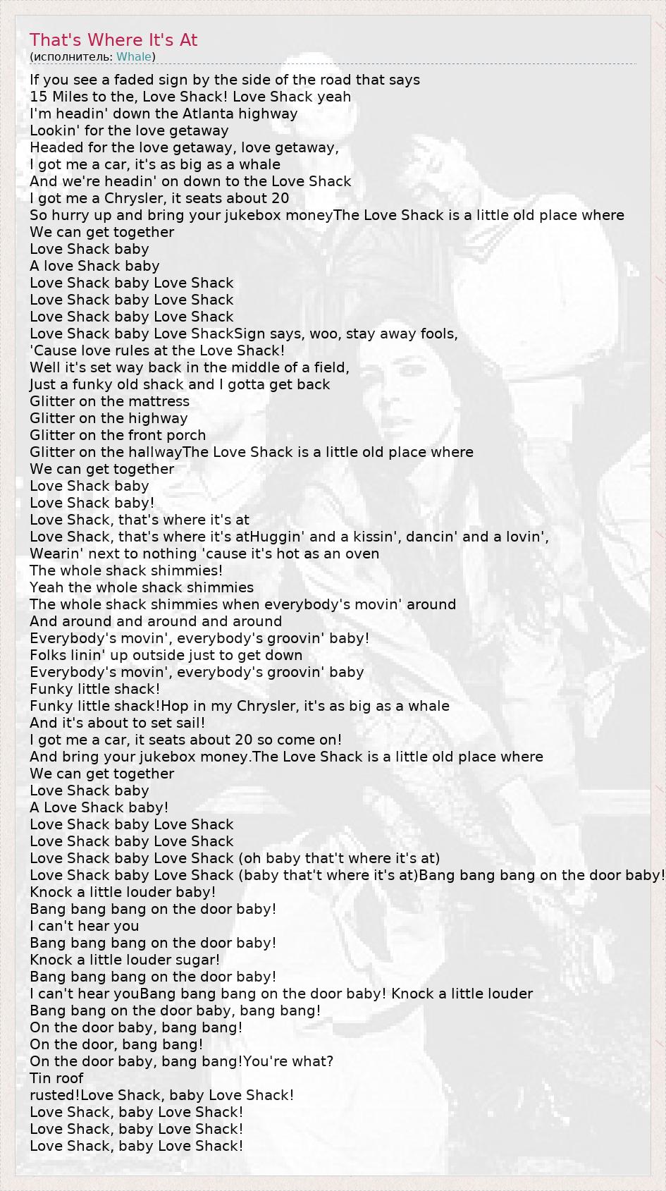 ГлавнаяИсполнителиWhaleThat's Where It's At