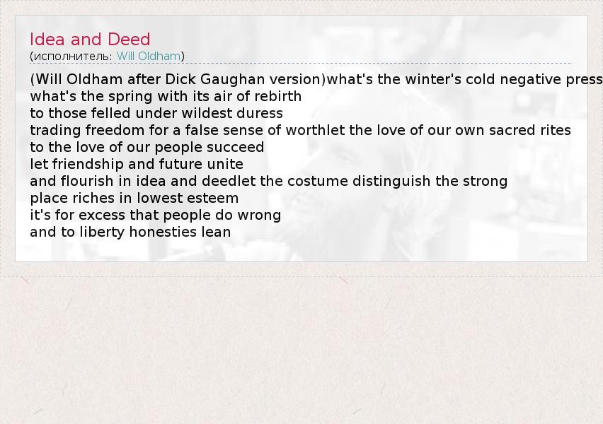 А как ты думаешь, о чем песня "Idea and Deed" ?