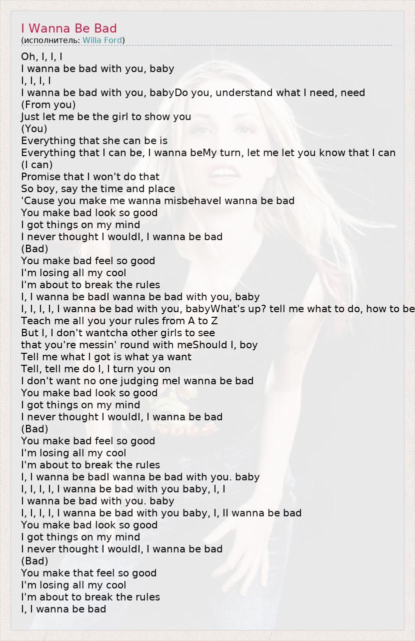 А как ты думаешь, о чем песня "I Wanna Be Bad" ?