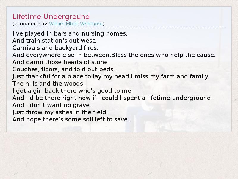 А как ты думаешь, о чем песня "Lifetime Underground" ?