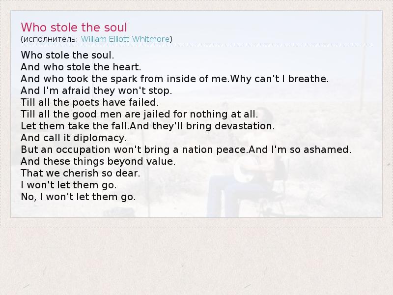 А как ты думаешь, о чем песня "Who stole the soul" ?