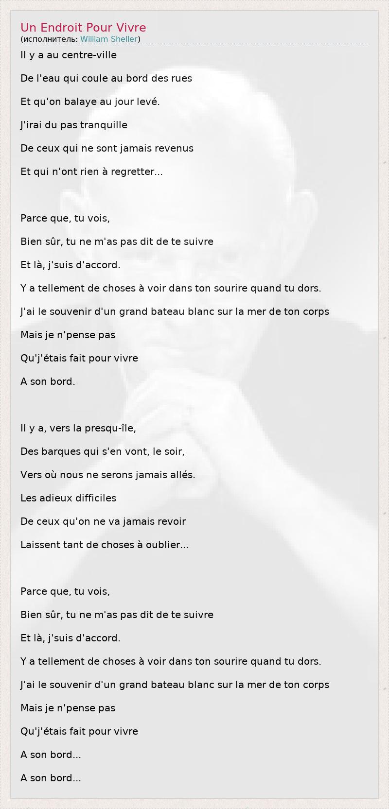 А как ты думаешь, о чем песня "Un Endroit Pour Vivre" ?