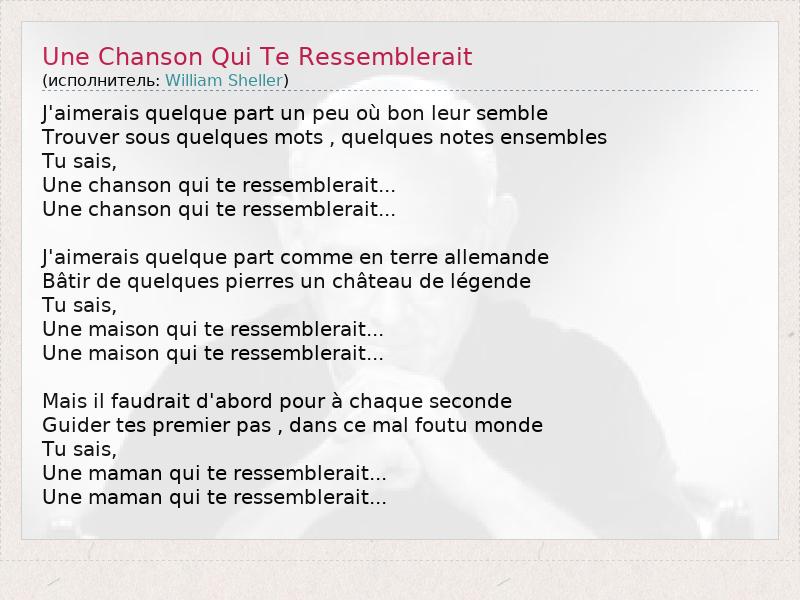 ГлавнаяИсполнителиWilliam ShellerUne Chanson Qui Te Ressemblerait