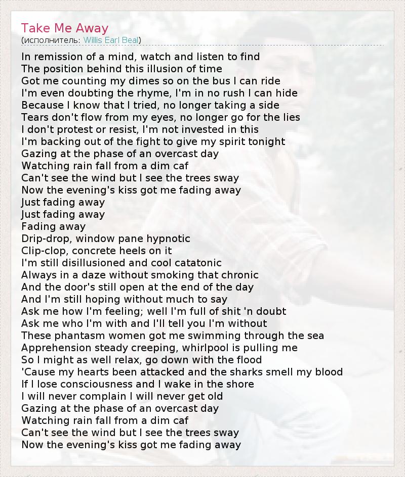 А как ты думаешь, о чем песня "Take Me Away" ?