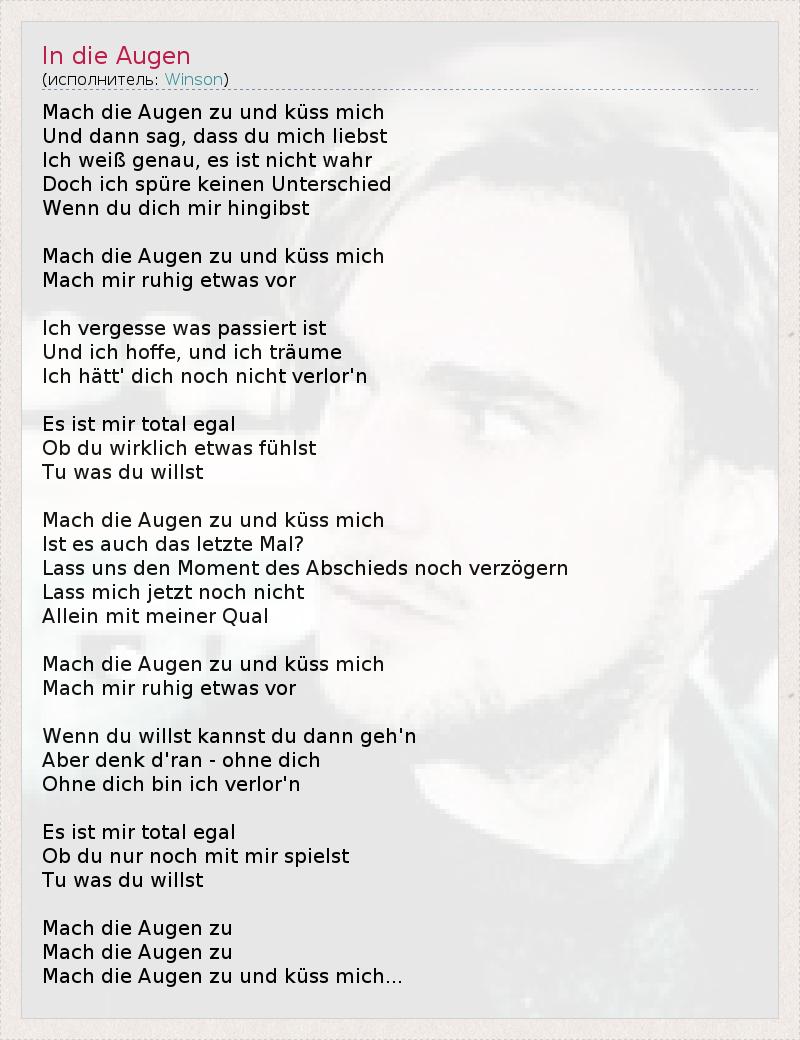 А как ты думаешь, о чем песня "In die Augen" ?