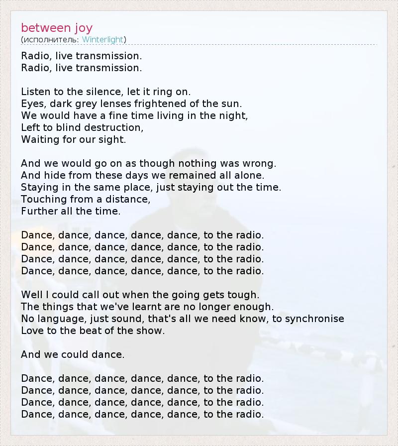 Танцуй, танцуй, танцуй, танцуй, танцуй под радио.
